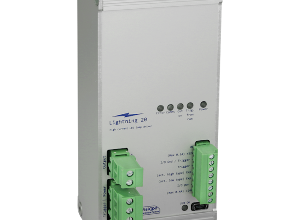 The driver can be configured with the supplied software. The supplied DLL can be used to configure it from your own PC software. As the protocol is fairly simple, the Lightning 20 can also be manually configured through a serial terminal, making it well suited as a dedicated driver paired with custom lamps. The unit is supplied with a DIN-rail clamp for easy mounting into system cabinets.